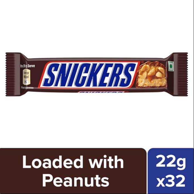 This pack contains 32 Snickers Peanut Filled Chocolate Bars of 22g each